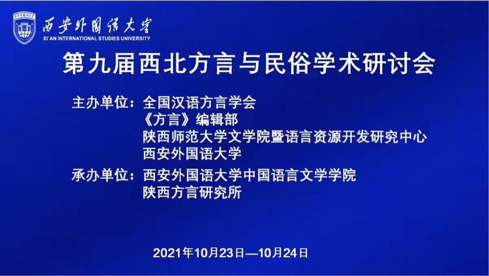 2021年10月23-24日,“第九届西北方言与民俗学术研讨会”在线上召开。会议由全国汉语方言学会、《方言》编辑部、陕西师范大学文学院语言资源开发研究中心和西安外国语大学主办,西安外国语大学中文学院、陕西方言研究所承办,bat365文学院韩承红教授参会并提交题为《西北民间歌谣的调查和研究》的论文。