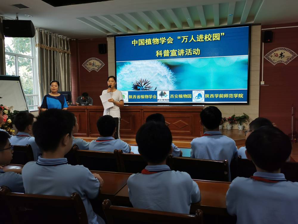 秋风送爽,丹桂飘香。以“百年再出发,迈向高水平科技自立自强”为主题的2021年全国科普日活动于9月11日在全国各地启动。生命科学与食品工程学院韩立敏副教授应陕西省植物学会邀请参与了由陕西省植物学会和西安植物园联合主办“万人进校园”科普宣讲活动,分别在9月13日上午和9月16日下午为雁塔雁南小学和雁塔城南中学小学部学生带去了两场精彩的科普讲座。科普主题为《作物驯化与人类的生活》,韩老师用通俗易懂的语言向同学们讲述了植物的重要性、人类驯化农作物的过程及转基因植物和我们人类的生活等,深入浅出的讲解和生动鲜活的实例让学生们受益匪浅,开阔了他们的视野,激发了他们对神奇的植物界和生物科学技术的求知欲和探索欲,赢得了与会师生们阵阵掌声。