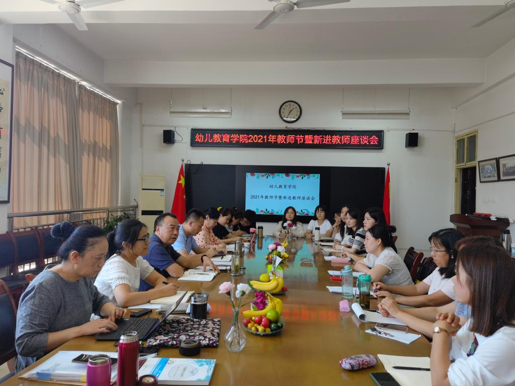 赓续百年初心,担当育人使命。在第37个教师节来临之际,幼儿教育学院于9月8日中午1点,在启真楼307会议室召开教师节暨新进教师座谈会。幼儿教育学院全体处科级干部、各系主任、教工党支部书记、院工会主席、2021年新入职教职工及新转入学院教师参加了座谈会。座谈会由学院副书记苏群主持。