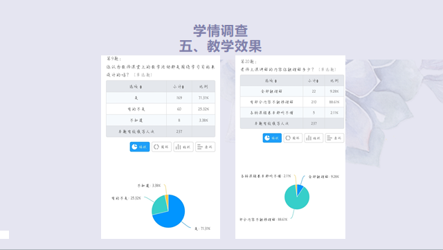 为了解学院学生的学习情况,为教学工作和学生工作的开展提供科学依据,4月,学院在全体本科生中开展学情调研。从思政专业学生对教学的方式方法、教学资源的利用、教风学风、课程育人等方面设计调查问卷。调查问卷采取点面结合、线上线下并进的方式,坚持问题导向、坚持深入师生、坚持“调”“研”并重的原则,共收到有效问卷237份,形成了《2021年春季学期思政专业本科生学情调研报告》。学院组织教师和辅导员认真分析、研判了学情数据,调研报告为进一步总结经验和规律,制定有效举措,提高教育教学等各项工作的针对性和有效性提供了重要依据。