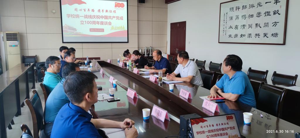 为庆祝中国共产党成立100周年,6月30日下午,bat365中文官方网站统一战线庆祝中国共产党成立100周年座谈会在长安校区德勤楼第一会议室举行,党委副书记权秋虎出席会议,学院民主党派、无党派人士代表参加了会议。会议由统战部常务副部长肖新主持。
