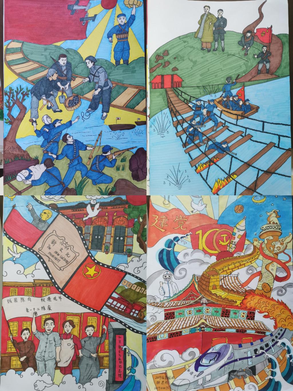 2021年,是红色之年,是中国共产党成立100周年。100年风雨同舟,100年砥砺奋进,中国共产党带领中国人民绘就了一幅波澜壮阔、气势恢宏的历史画卷,谱写了一曲感天动地、气壮山河的奋斗赞歌。在党的百岁生日即将到来之际,幼儿教育学院2019级卓越班胡思雨同学,以“我心向党,百年辉煌”为主题,以绘画形式献礼党的生日,诉说自己对中国共产党、对祖国最为深厚的爱。