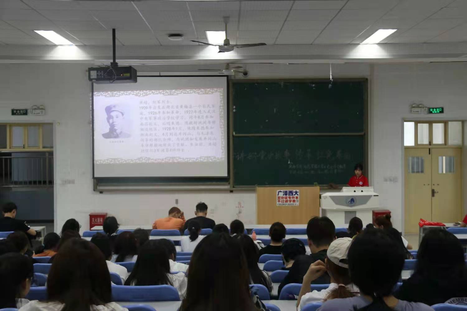 宣讲会上,五位宣讲员分别给大家带来了英雄故事《三封家书谱写一生革命》、《虎穴键奇功,青山留忠魂—龙潭三杰之李克农》、党史故事《学习照金精神,体悟别样青春》、《怡青春之我 创建青春之国家—共产主义先行者李大钊》与长征故事《重走长征路,少年不惧战火扬—第一位牺牲的红军师长洪超》。宣讲员从红色故事的角度将党史进行呈现,引导在场学生要继承和发扬老一辈共产党人不畏艰难、艰苦奋斗的革命精神,并将这种精神转化为责任担当,将精神化为动力,不断努力拼搏,争做有理想有本领有担当的新时代合格大学生。