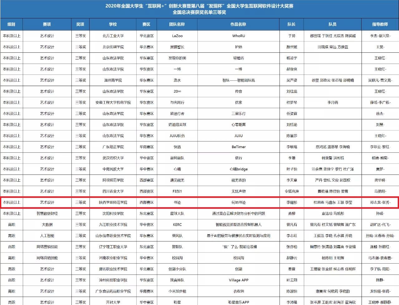 近日,全国大学生“互联网+”创新大赛暨第八届“发现杯”全国大学生互联网软件设计大奖赛落下帷幕。bat365信息工程学院学生李耀彤、杜思雨、马鑫东、王颖、李莹团队设计的《何地寻迹》(指导教师:邓志龙、张秀)在学院领导的大力支持,教师的悉心指导下,经过激烈比拼,以西部赛区一等奖的好成绩进入全国总决赛,最终获得全国总决赛三等奖,同时在147组参赛作品中获得唯一的最具人气奖。