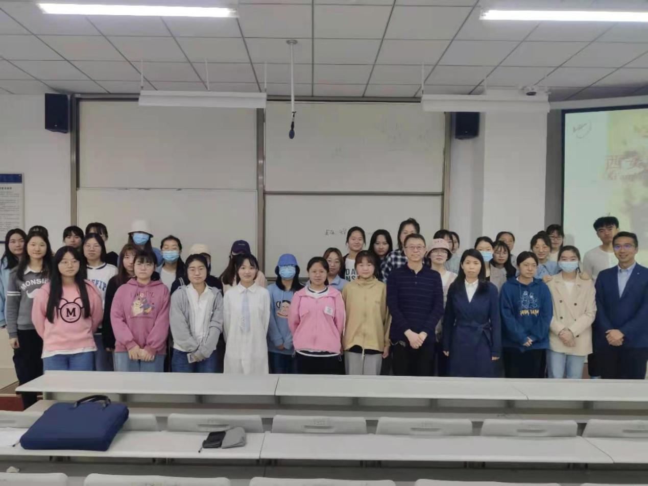 讲座的最后,副院长王雨、翻译系主任张琛睿老师、参会学生与吴家彤总经理一同合影留念。