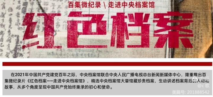 百集微纪录片《红色档案》,是中央档案馆联合中央人民广播电视总台新闻新媒体中心庆祝中国共产党成立100周年隆重推出的专题栏目,该栏目生动讲述档案背后的人物和故事,从多个角度呈现中国共产党始终秉承的初心和使命。