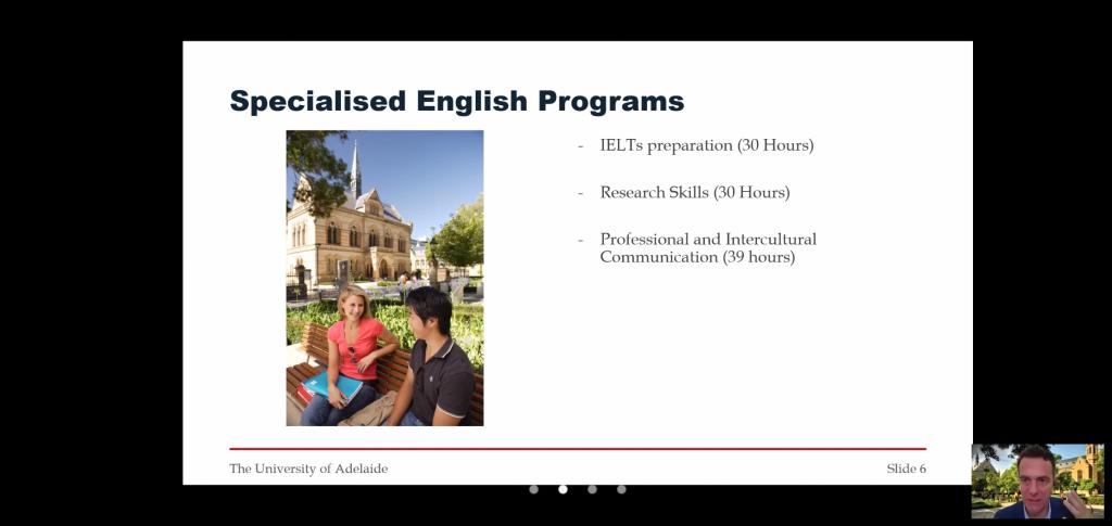 本次线上交流体验课邀请了阿德莱德大学英语学习中心两名资深教师授课,主讲人具有丰富的在线授课经验。主讲老师依托在线会议软件平台,带领师生线上体验了互动式教学并引用案例进行分组讨论体验。体验课结束之后,主讲人对阿德莱德大学所开设的多门在线课程信息进行了详细介绍并对学生感兴趣的问题逐一解答。