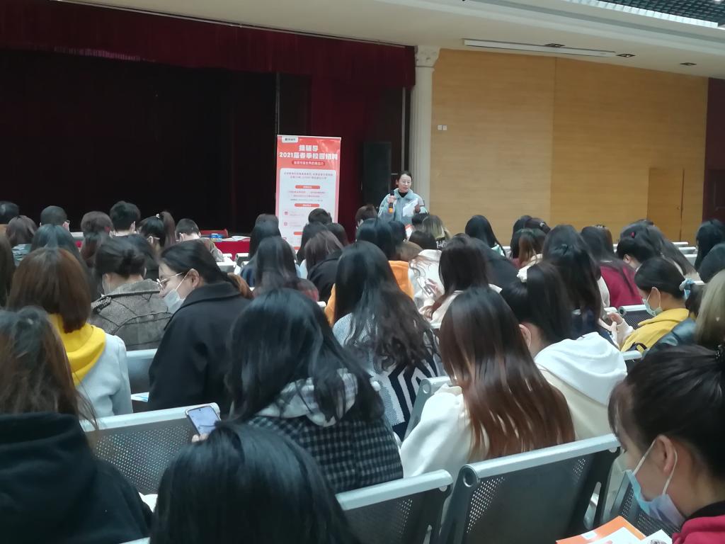 西安莲湖五星街幼儿园、西安曲江新区中海域幼儿园、猿辅导三家单位应邀来校参加招聘会。招聘会开始,各单位用人单位向毕业生发放招聘简章并进行宣讲。为了提升招聘会的签约效果,特邀请在猿辅导就职的生科院2020届优秀毕业生杨奕莹同学进行宣讲,她向学弟学妹们分享了自己的就业经历和任职经验,极大地增强了毕业生们的职业认同感。