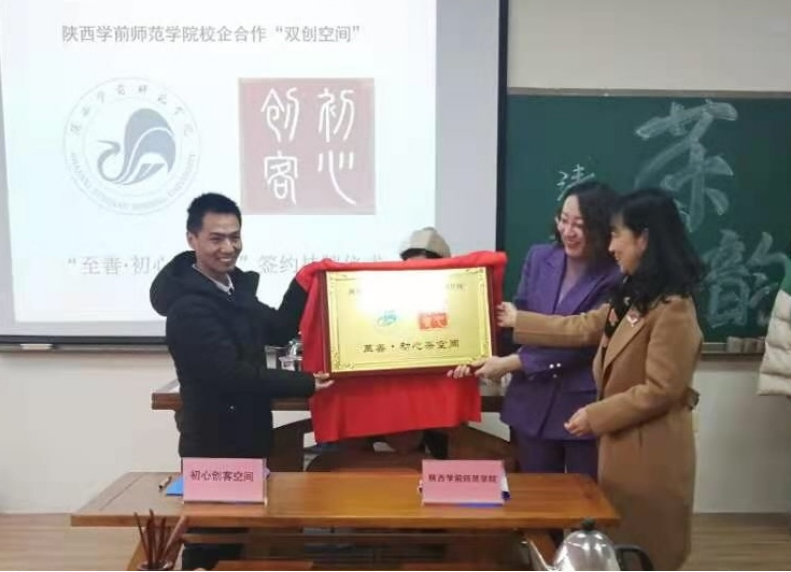为适应新时代高等教育发展要求,推进bat365创新创业教育,探索校—地—企深度合作,深化专业内涵建设,提升人才培养质量,历史文化与旅游学院于2021年1月6日上午,在bat365茶文化实训室与西安市初心创客空间举行了校企合作双创空间——“至善•初心茶空间”签约挂牌仪式。