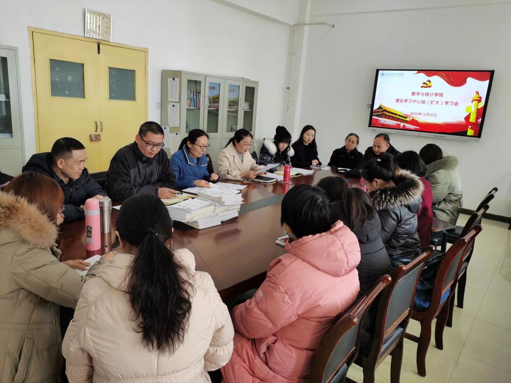 12月30日15点,数学与统计学院在积学楼D319会议室召开了党总支理论中心组(扩大)学习会议。学院理论学习中心组成员、各系部主任、党支部书记、科级干部参加了本次学习会。副校长相艳出席并讲授专题党课。会议由党总支副书记(主持工作)田彩萍主持。