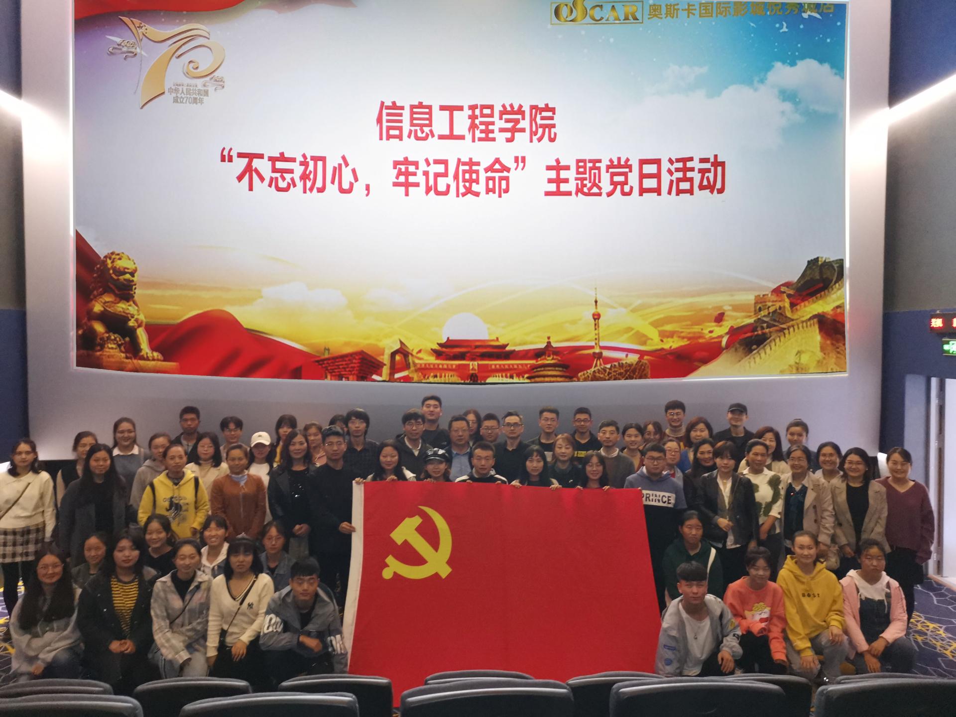 为进一步推进“不忘初心,牢记使命”主题教育,传承红色基因,寻找初心、校准信仰。丰富学习载体,增强学习的针对性、实效性和感染力,信息工程学院党总支于10月19日组织全体党员开展以观看红色电影《为国而歌》为主题的主题党日活动,