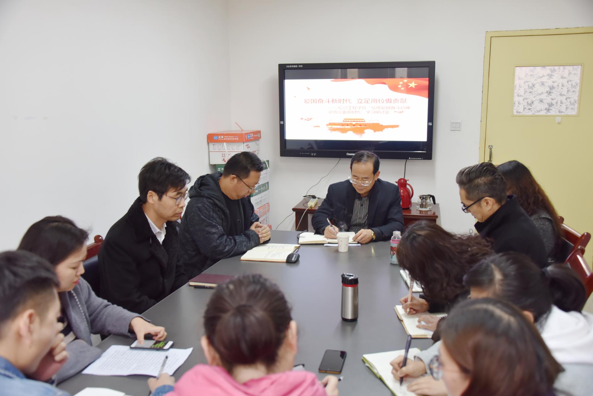 最后,文明副校长对大家的发言进行了肯定和鼓励,他指出:第一,学校必须以学生为本,作为一名教师,坚定信念、立足本职、追求卓越、勇于创新,把书教好、把人育好,就是对新时代最好的建功立业。第二,信息工程学院要充分发挥专业优势,把实践教育成果带入课堂、带给学生、带进社会,继续传承和弘扬爱国奋斗精神传统,为学校发展奏响强音、再建新功。第三,目前评建工作是bat365的重中之重,广大师生要把弘扬爱国主义精神和履行岗位职责相结合,把弘扬爱国主义精神和与学校评建任务相结合,立足岗位做奉献。