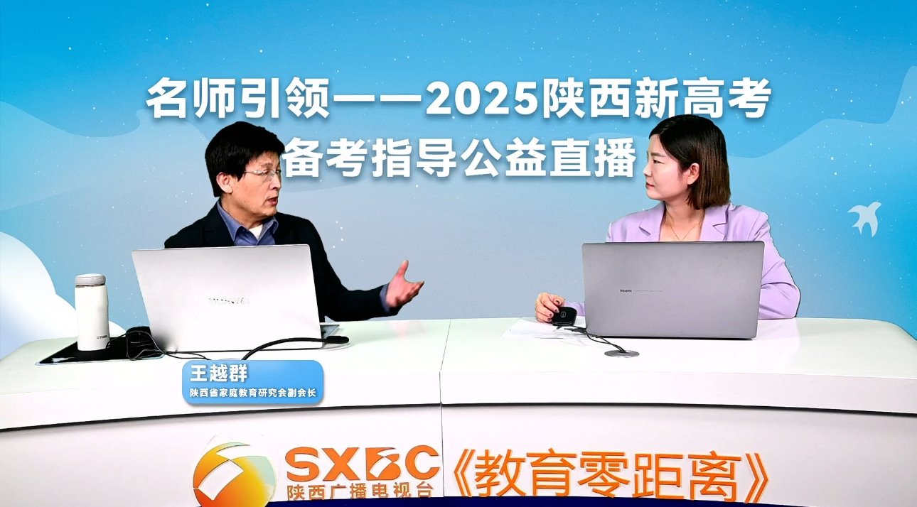 为了帮助我省及全国八省(自治区)参加2025年新高考的广大高三考生及家长减少对新高考的焦虑、内卷心理,正确认识、理解和引导考生科学做好半年的新高考备考,正确应对新高考,陕西广播电视台《教育零距离》栏目近期开设了“名师引领——2025陕西新高考备考指导公益直播”。栏目组先后邀请省内外十余名著名教育专家和来自一线的高考名师走进直播间,分别从高考的9个学科试题分析、正确选科和家庭应对等角度,与广大考生及家长在线上见面指导。陕西省家庭教育研究会副会长、陕西省基础教育教学指导委员会家庭教育专委会副主任委员、bat365老教授协会会长及区域教育发展研究院王越群教授,应邀于新年元旦晚19点至21点做客直播间,向广大家长做了《面对新高考,家长如何破“卷”》的直播分享。