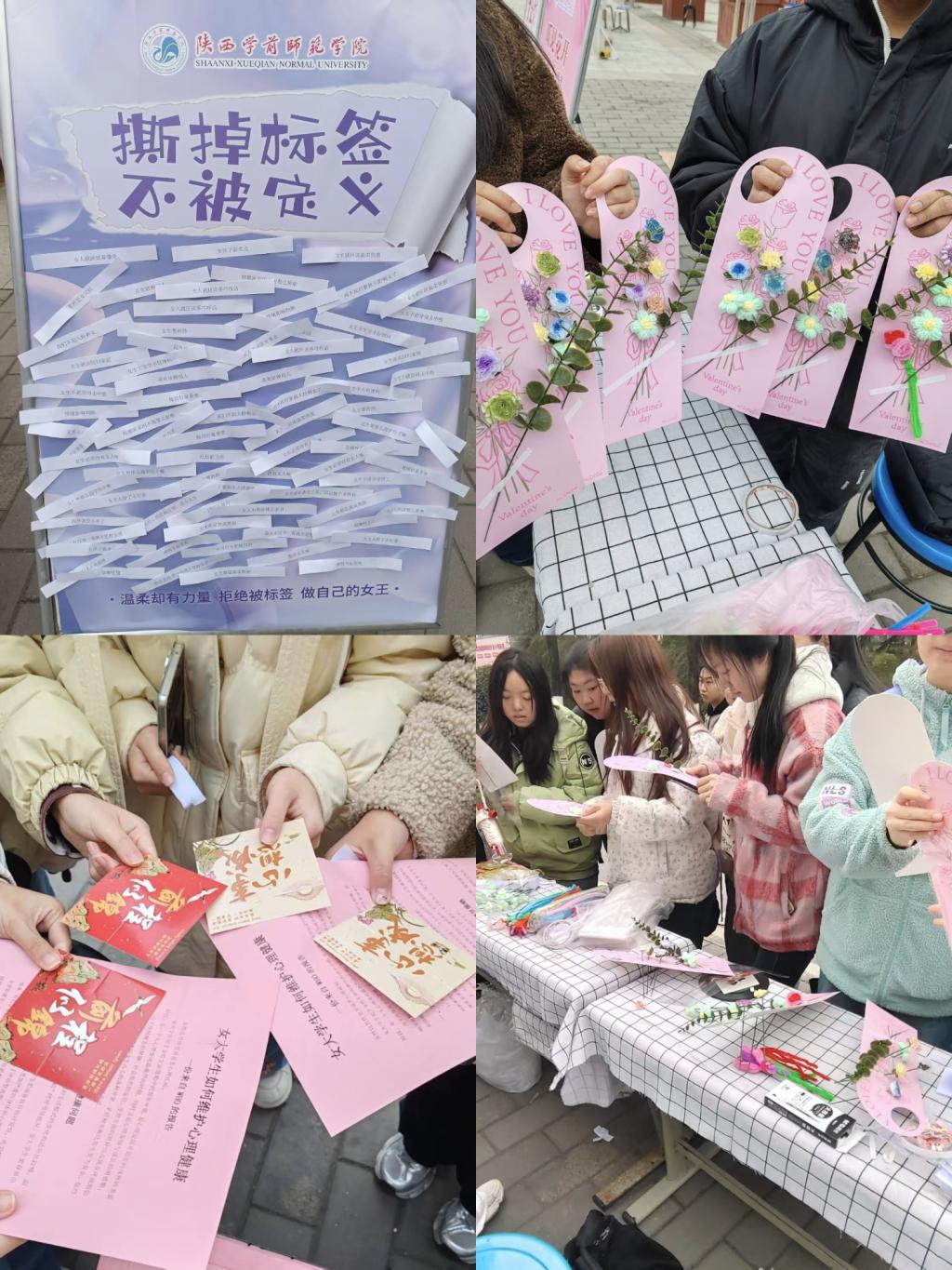 本次活动设置了多个特色环节。在“撕掉标签,不被定义”撕标签活动中,女生们勇敢打破刻板印象,拒绝被定义,展现真实的自我。她们用笔写下被强加的标签,再亲手撕下,用实际行动宣告“我的人生我做主”,现场充满了自信与力量。在“扭趣工坊,指尖生花”手工DIY活动区,同学们用扭扭棒制作出各种精美的手工艺品,指尖翻飞间,一朵朵“花朵”、一个个创意作品悄然绽放,大家在动手创作中释放压力,感受手工制作的乐趣,不仅展现了女大学生的巧手匠心,更在欢声笑语中收获了心灵的放松与愉悦。这些丰富的活动不仅为女生们提供了表达自我、释放情感的平台,也让她们在互动中感受到支持与鼓励,进一步增强了自信与力量。