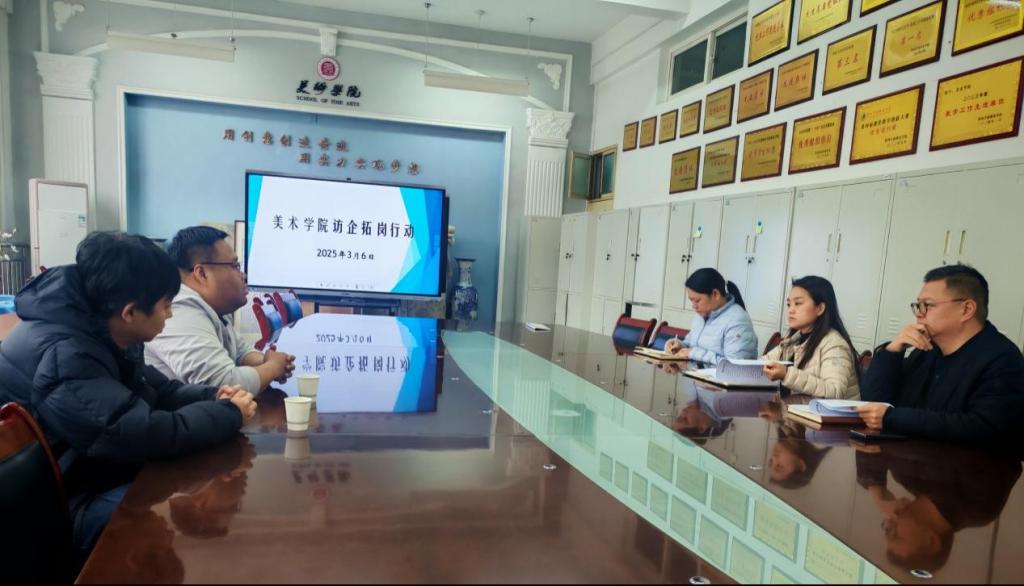 为全面落实立德树人根本任务,深化校企交流合作。3月6日,在启智楼219会议室美术学院与西安市数字内容产业研究院开展“访企拓岗”促就业专项行动。美术学院党委书记、副书记、副院长参加了座谈会。