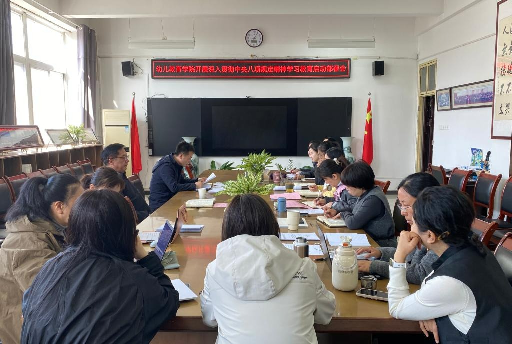 【幼儿教育学院】2025年3月24日上午,幼儿教育学院党委在启真楼307会议室召开深入贯彻中央八项规定精神学习教育启动部署会,启动和部署学院学习教育工作。校党委书记邵必林出席会议并作指导讲话。幼儿教育学院全体党委委员、各支部书记、副书记、各系主任参加会议。会议由幼儿教育学院学院院长范铭主持。