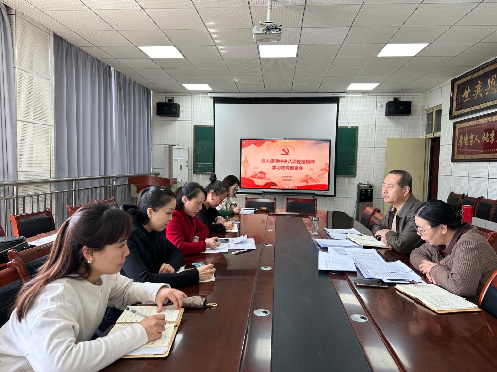 会议强调,要聚焦关键环节,高标准落实学习教育任务。一是坚持以学铸魂,夯实思想根基。要把中央八项规定精神学习教育作为当前和今后工作学习中的一项重要政治任务,驰而不息加强作风建设,树牢正确权力观、政绩观、事业观,以实际行动坚定拥护“两个确立”、坚决做到“两个维护”,确保学习教育各项工作任务落实到位。二是要坚持问题导向,切实转变工作作风。领导班子成员要以身作则,率先垂范,带头严格执行中央八项规定精神,带头改进工作作风,带头深入基层调研,全面深入查找存在的问题,举一反三、找准症结、确保把整改落实的成效转化为扎实推进中心工作和重点任务的有力行动。三是要加强组织领导,确保学习教育顺利进行。要把深入贯彻中央八项规定精神学习教育作为全年党建工作的重点任务,一体推进党风政风、师德师风、校风学风建设。各党支部要坚决扛起主体责任,细化工作实施方案,针对不同群体党员特点,分层分类开展学习教育。要向全体教职工传达会议精神,做出具体安排部署,让教职工明确开展学习教育的重大意义和重要要求。要抓好开门教育,走好群众路线,广泛征求教职工意见,接受群众监督。要处理好学习教育和当前各项工作的关系,确保各项工作顺利开展。