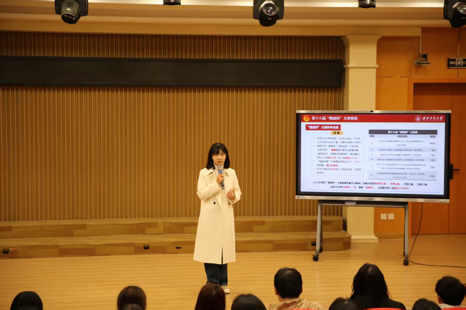 为了做好2025年“挑战杯”大学生课外学术科技作品竞赛校赛备赛、省赛优秀作品培育工作,3月19日,校团委特邀西北工业大学团委副书记、科创部部长高云老师在积学楼C1报告厅开展赛事专题辅导。辅导报告聚焦“选题出发点”“评委评分点”“学校政策牵引”三个维度,通过对竞赛规则的解读、选题定位的寻找、评审加分点的梳理为在场200余名师生提供实战指导。