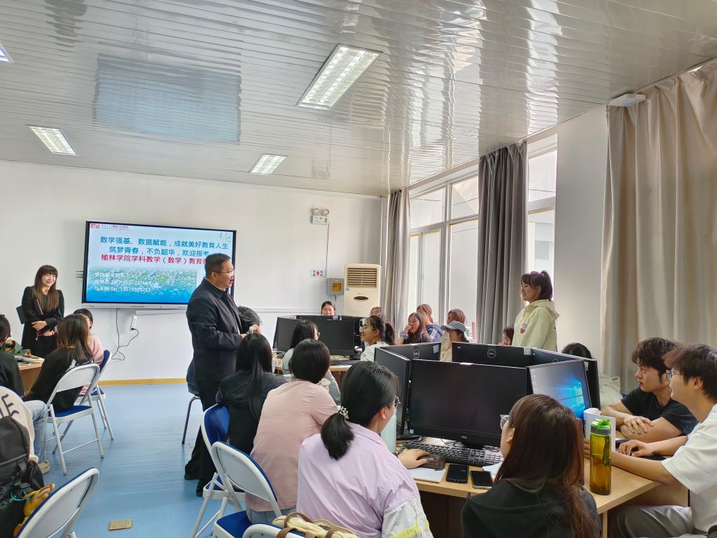 闫树熙教授为我院学生详细介绍了榆林学院数学与统计学院的办学特色、师资力量、课程设置、奖助政策、报考条件、培养方案、考试大纲等学生特别关切的问题,并鼓励学生积极报考。在交流环节,他耐心细致地解答了学生提出的“招生人数和复试线多少?”“初试和复试的考试科目是什么?”“住宿条件怎么样?”等问题,闫教授的讲解思路清晰、热情洋溢,赢得学生阵阵掌声和欢笑声,现场氛围轻松活跃、积极向上。