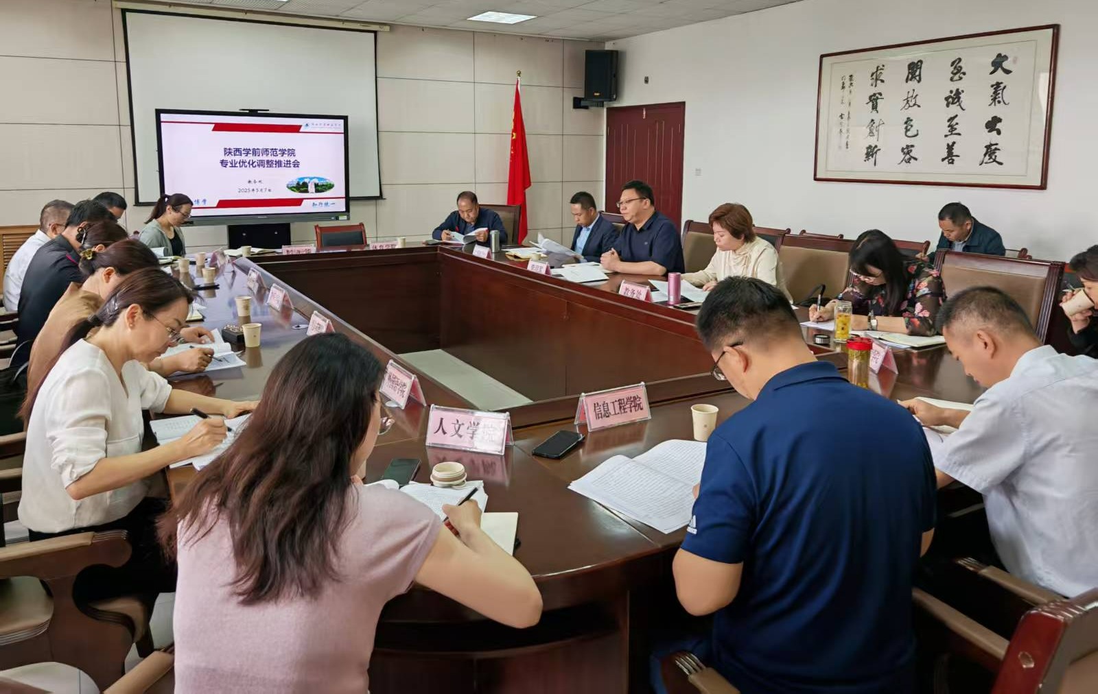 会上,教务处崔洁处长领学并解读了《教育强国建设规划纲要(2024-2035年)》、2025年全国教育工作会议要点、《普通高等教育学科专业设置调整优化改革方案》、高校学科专业设置调整优化工作推进会精神、陕西省本科专业引导发展名单等政策文件精神。随后,各教学单位就本部门专业设置与建设情况,以及未来调整优化思路进行充分交流讨论。另外,发展规划处处长潘炳超和招生就业处处长吕银芳,分别从学校“十五五”学科专业发展规划编制,以及近年来bat365招生、就业以及人才市场需求的角度,为专业调整优化提出指导意见和建议。