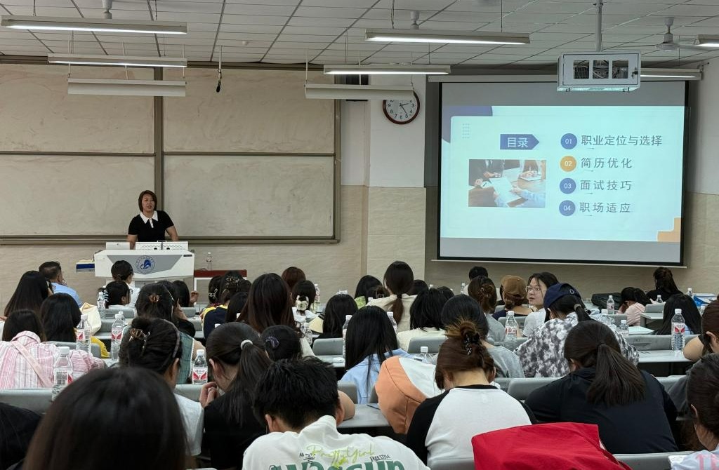 活动精心设置“政策引航”、“普法护航”、“技能赋能”、“职场直通车”四大环节。首先,在智慧楼阶1教室开展了就业宣讲。新城区人才中心工作人员主要围绕高校毕业生就业见习补贴、灵活就业社保补贴等政策内容,并就求职安全防范相关内容进行指导,强化学生权益保护意识;区劳动人事争议仲裁院仲裁员聚焦劳动合同签订、社保缴纳、争议处理等场景,结合相关法律法规进行解读,帮助毕业生强化求职法律意识;就业指导专家围绕求职实用技能展开深度培训,引导学生锚定职业方向,提升就业竞争力。