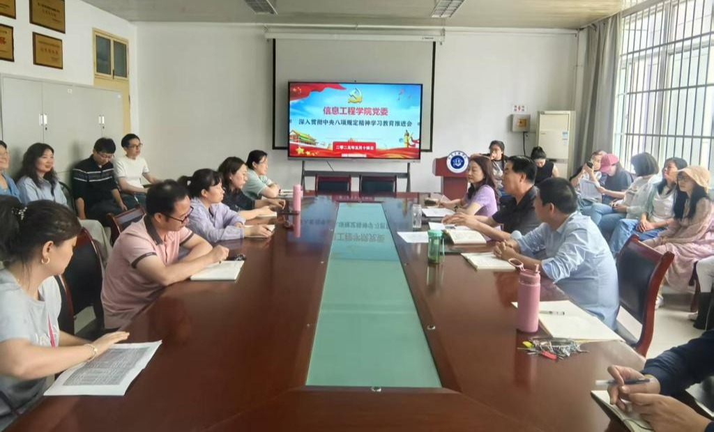 【信息工程学院】2025年5月15日下午,信息工程学院在积学楼A204会议室召开深入贯彻中央八项规定精神学习推进会,贯彻落实中央、省委及学校党委学习教育工作专班有关要求,推进全院学习教育工作走实走深。学院领导班子全体成员、全体教职工党员参加会议,会议由院党委书记白建超主持。