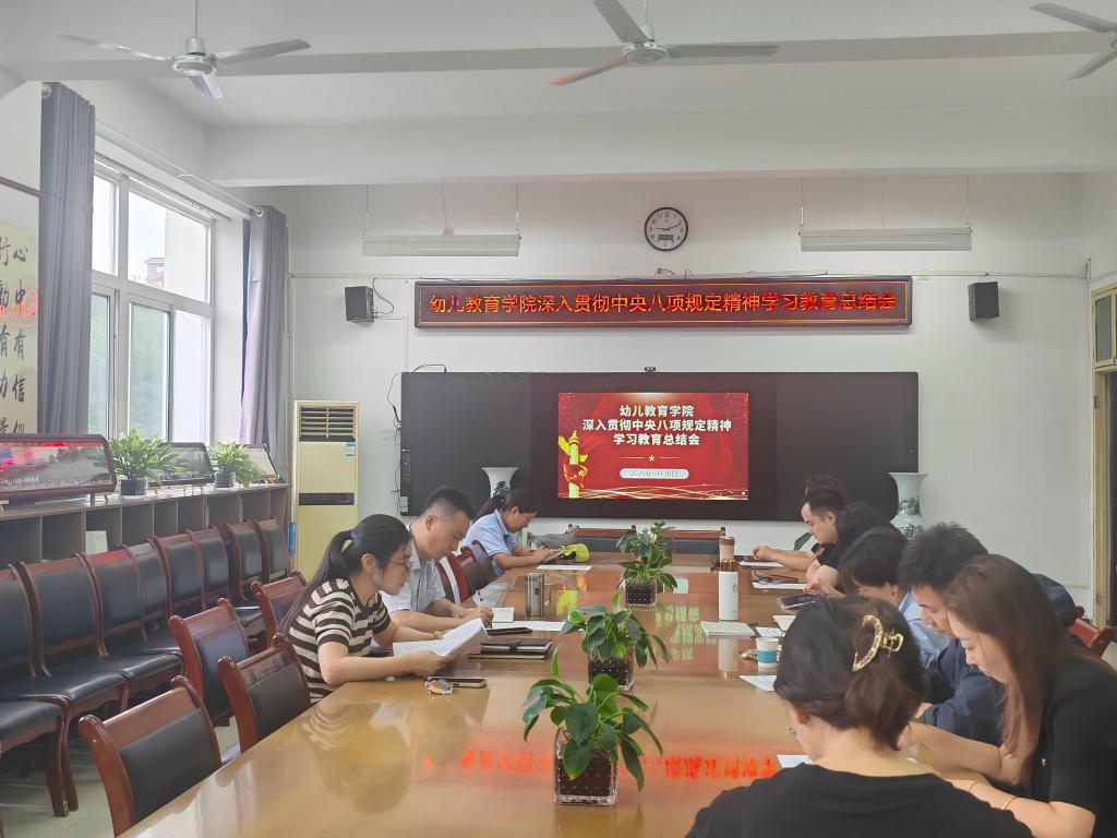 2025年9月16日上午9时,幼儿教育学院在启真楼307会议室召开深入贯彻中央八项规定精神学习教育总结会,处科级干部和各党支部书记参加会议。