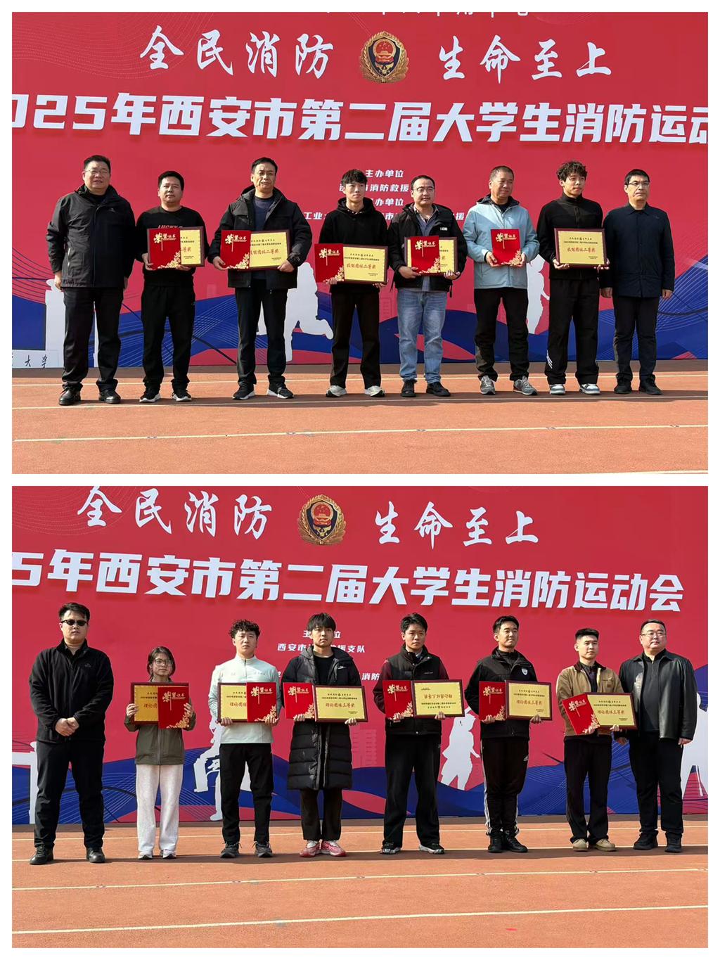 2025年11月15日,西安市第二届大学生消防运动会在西北工业大学长安校区隆重举行。以“全民消防 安全至上——安全用火用电”为主题,这场集知识性、实践性与竞技性于一体的消防盛会,吸引了全市多所高校同台比拼。学校学子奋勇出击、团结协作,在激烈角逐中脱颖而出,勇夺技能团体二等奖、理论团体三等奖,以优异成绩展现bat365学子过硬的消防素养与昂扬的精神风貌。