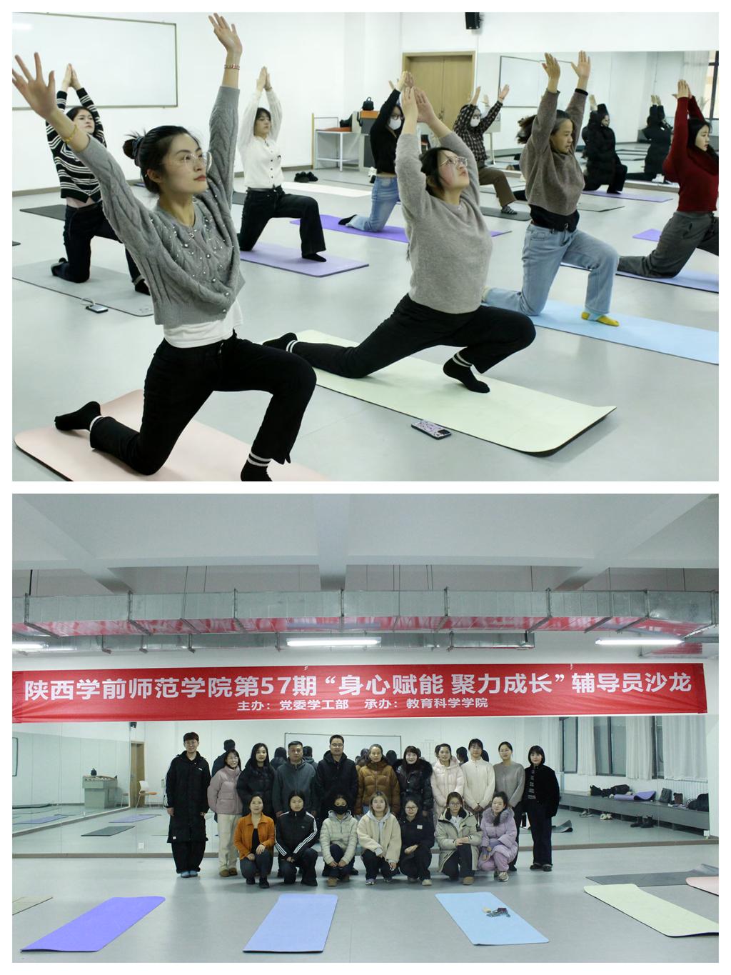 为提升辅导员心理调适能力,赋能辅导员以更加饱满精神状态投入育人工作,12月12日下午,由党委学生工作部主办,教育科学学院承办的第57期“身心赋能 聚力成长”瑜伽主题辅导员沙龙在体育馆瑜伽室成功举办。