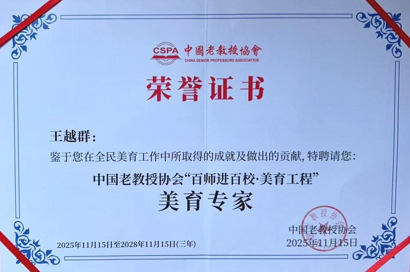 1月14日,陕西省老教授协会六届八次常务理事会在西安召开。学校老教授协会会长王越群教授获聘中国老教授协会“百师进百校・美育工程”美育专家。