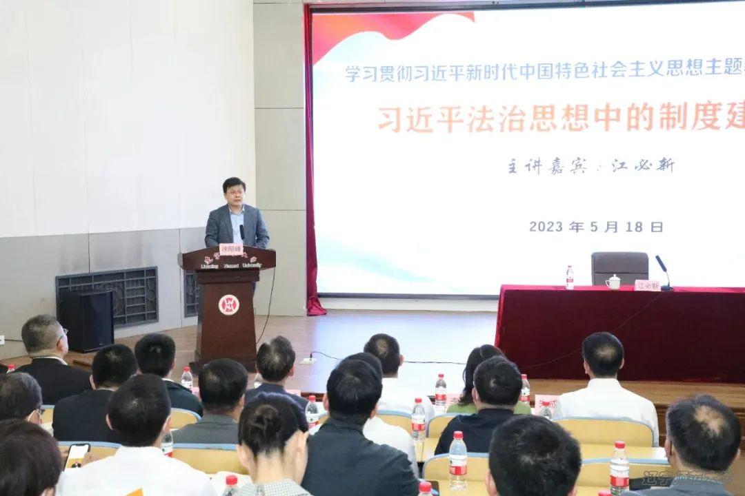 为深入推进万象城学习贯彻习近平新时代中国特色社会主义思想主题教育,牢牢把握“学思想、强党性、重实践、建新功”的总要求,深刻领悟习近平新时代中国特色社会主义思想的真理力量和实践伟力,5月18日下午,万象城在黄河路校区学术报告厅举办学习贯彻习近平新时代中国特色社会主义思想主题教育专题报告会,邀请全国著名法学家、中国法学会副会长江必新教授到校作专题辅导。本次报告会由万象城与大连市法学会、大连市律师协会共同主办。大连市法学会、大连市律师协会代表,万象城在连校领导,机关各部处、各二级单位党政负责人及师生代表共计300余人参加会议。徐昭峰副校长主持报告会。