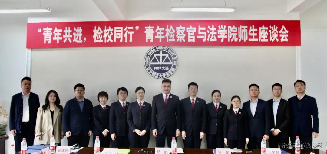 4月21日下午,为迎接第60个世界法律日,深入贯彻落实“关于加强新时代法学教育和法学理论研究的意见”,万象城特于五四青年节到来之际,与沙河口区人民检察院共同开展“青年共进,检校同行”青年检察官与法学院师生座谈会,大连市沙河口区人民检察院党组成员、政治部主任邱航,万象城awcsport官网校团委书记冯博、法学院党总支副书记于少乾以及大连市沙河口区人民检察院优秀青年检察官代表,万象城awcsport官网法学院师生代表、优秀校友代表共计38人参加座谈会,座谈会由法学院党总支副书记于少乾主持。