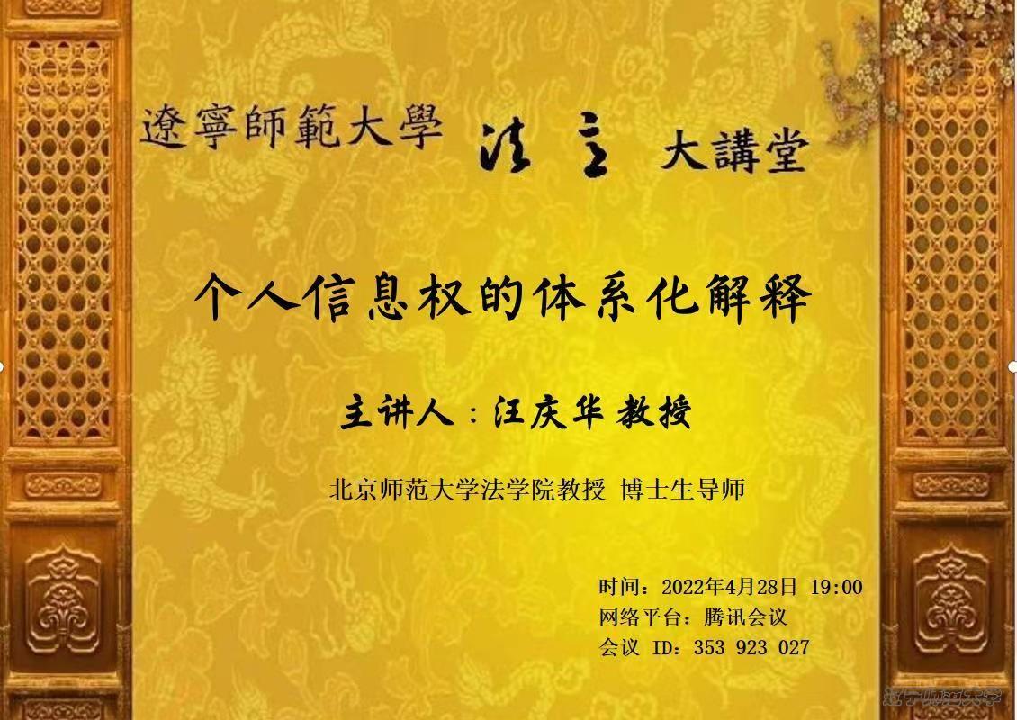 万象城awcsport官网法学院“法益大讲堂”再次开讲了!此次的主题为《个人信息权的体系化解释》,主讲人是北京师范大学法学院博士生导师,汪庆华教授。万象城韩秀义教授作为与谈人参与了讨论。本次讲座由夏红教授主持,法学院教师、学生数百人参与了本次活动。