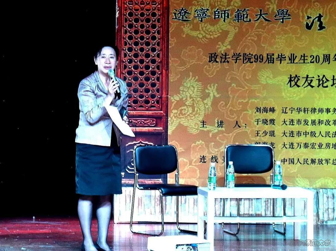 大连市发展和改革委员会政策法规处处长于晓霞校友首先向同学们进行提问,法科学生应当在大学四年期间积累些什么?如果进入到机关工作和别的专业同学应有什么样的区别?她以自己的切身体会告知同学,二者的区别就在根植于头脑中的法律思维。她特别强调要注意细节,结合她作为考官的经历,告诫同学们一定要修炼自己的“内功”,成为一个招之则来,来之能战优秀法律工作者。