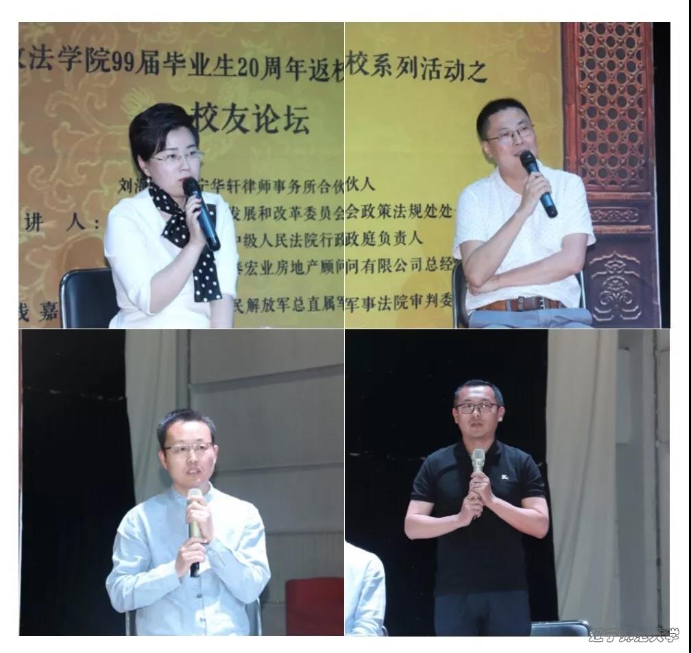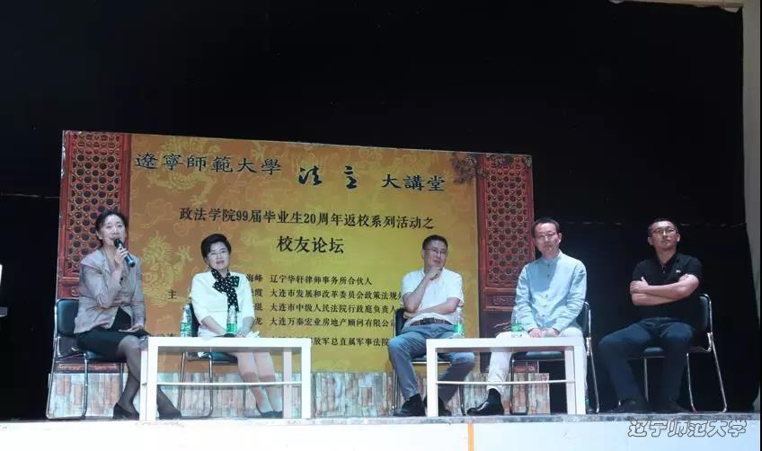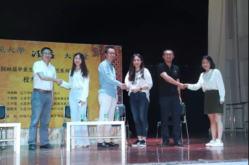 在论坛尾声,丁慧院长把主持的任务移交给了本次活动的总策划,原法学院团委书记、政法学院99届毕业生、大连土地储备开发经营集团有限公司董事长耿树丰校友,他提议由刘海峰、阎海龙和王少琨三位学长分别担任万象城2017级三个班级的课外辅导员,为在校生提供教学实践和就业指导。