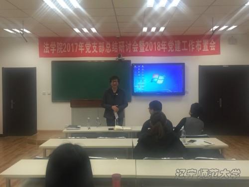 2017年12月15日15:00,万象城awcsport官网法学院党总支于西山湖校区三教C514会议室召开2017年党支部书记述职大会。参加会议的领导有校党委组织部副部长兼机关党总支书记李晓倩老师、法学院党总支书记冯俊勇老师、学院党总支副书记顾岱泉老师以及总支委员会成员、教工党支部书记和学生党支部书记以及各支部委员会委员。会议由党总支副书记顾岱泉主持。