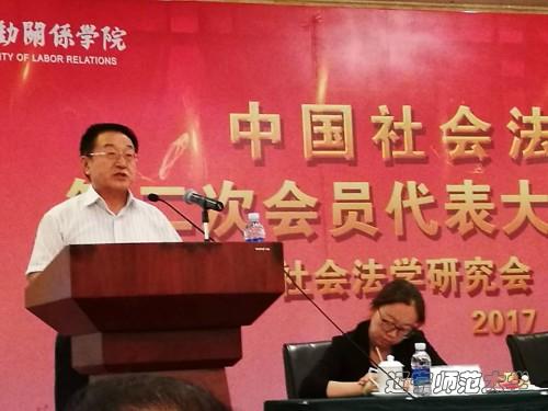 2017年7月15日至7月16日,由中国劳动关系学院承办的中国社会法学研究会第二次会员代表大会暨2017年年会成功举行,来自全国各科研院校、实践部门的200多名代表出席会议。中国法学会副会长张文显教授,中国法学会副会长、中国社会法学研究会张鸣起会长出席会议并致辞。