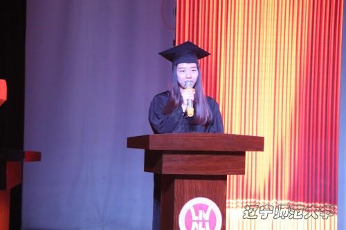 17届硕士生代表田慧、本科生代表姚丹阳分别在大会上发言。她们代表全体毕业生向学院致以崇高的敬意与诚挚的感谢,表达了对学院的不舍以及对全体老师的真挚祝福。