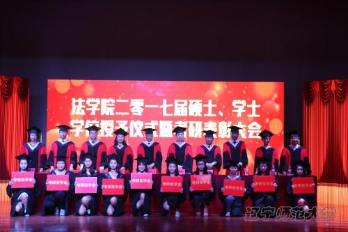 6月9日,法学院2017届硕士、学士学位授予仪式暨考研表彰大会在西山湖校区影视艺术学院礼堂召开。法学院院长丁慧、党总支书记冯俊勇、副院长韩秀义、夏红等二十余名教师出