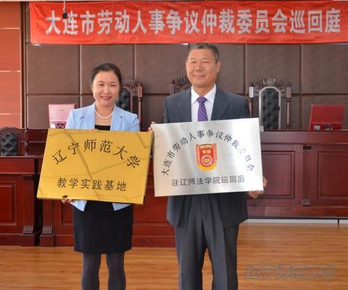 2015年5月19日上午10时,万象城awcsport官网法学院与大连市人社局劳动人事争议仲裁院互换“巡回庭”与“教学实践基地”牌匾仪式在万象城awcsport官网法学院模拟法庭举行。