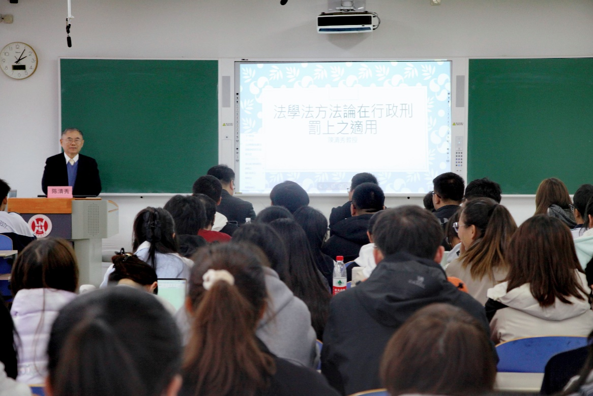 报告中,陈清秀教授强调法学方法论的理论系统应普遍适用于整体法领域以及部门法领域,像刑事法领域等,展现出广泛的适用性;同时,整体法秩序也应要求其统一性,刑事法与其他法领域应友好融合,就像贝多芬第九交响曲般和谐,避免相互对立矛盾。他详细阐述了法学方法论在行政刑罚中的具体应用,通过生动的案例和深入浅出的讲解,使师生们对法学方法论在行政刑罚中的适用有了更深入的理解。
