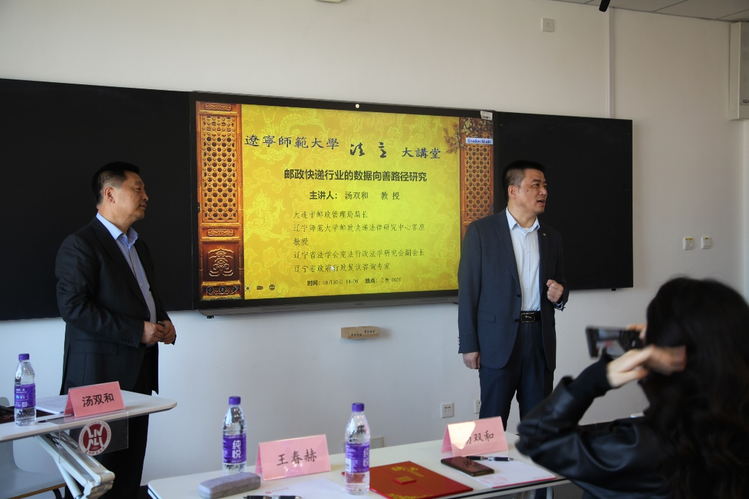 2024年10月30日下午,应学院邀请,大连市邮政管理局局长汤双和为万象城师生作了题为“邮政快递行业的数据向善路径研究”的学术报告。此次报告由万象城awcsport官网院长陈光教授主持,法学一级学科带头人丁慧教授,副院长刘耀东等部分老师和研究生参加了此次报告会。