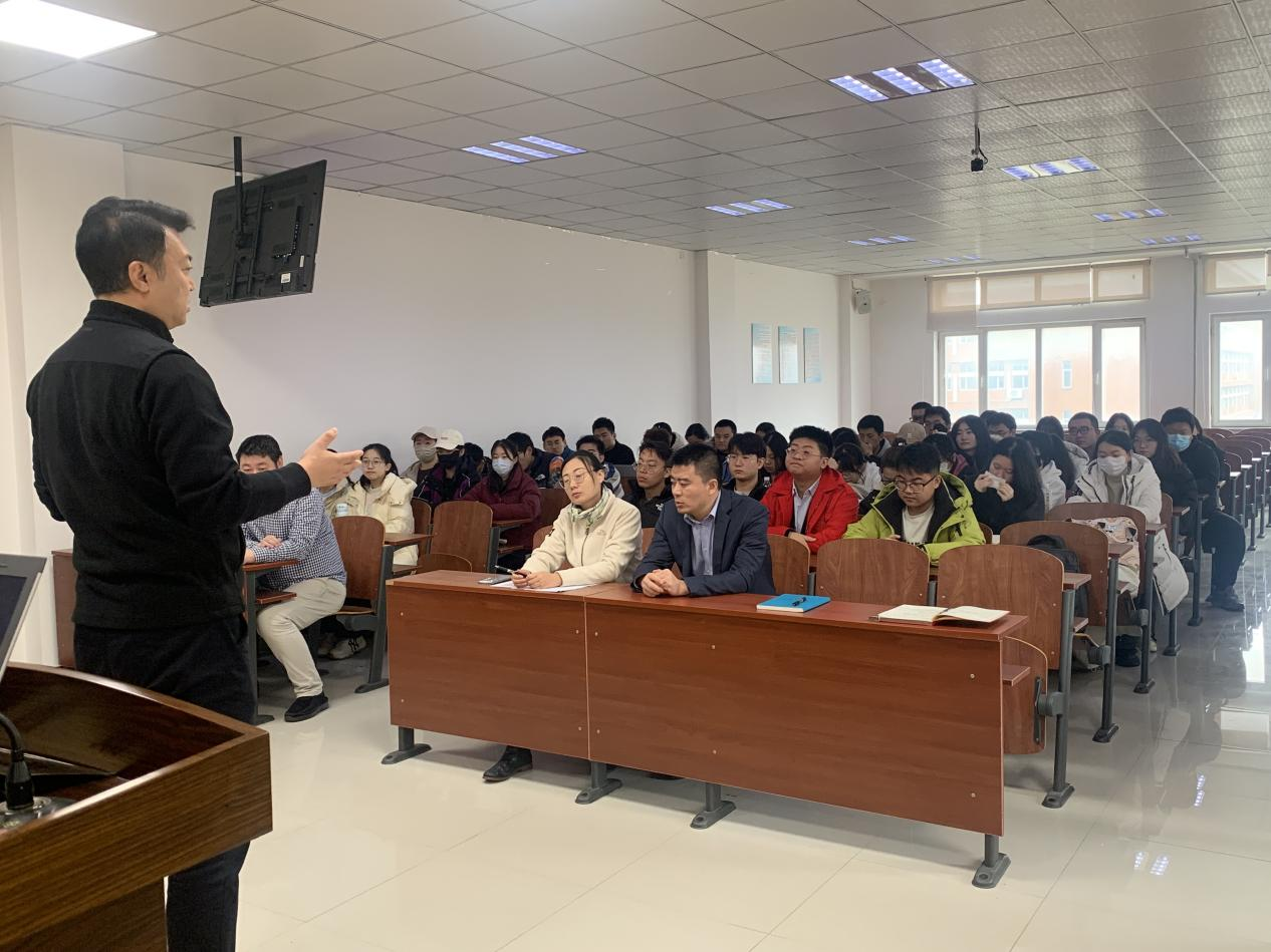大会伊始,实习指导教师王峻峰对本次实习情况进行全面总结。肯定同学们在实习过程中的积极态度和突出表现,同时也指出了同学们在投身职场后尚需提升之处。最后,他将学院实习制度进行了全面而清晰的说明,提醒所有实习生,实习结束后需按时提交实习报告、实习鉴定表等相关材料。