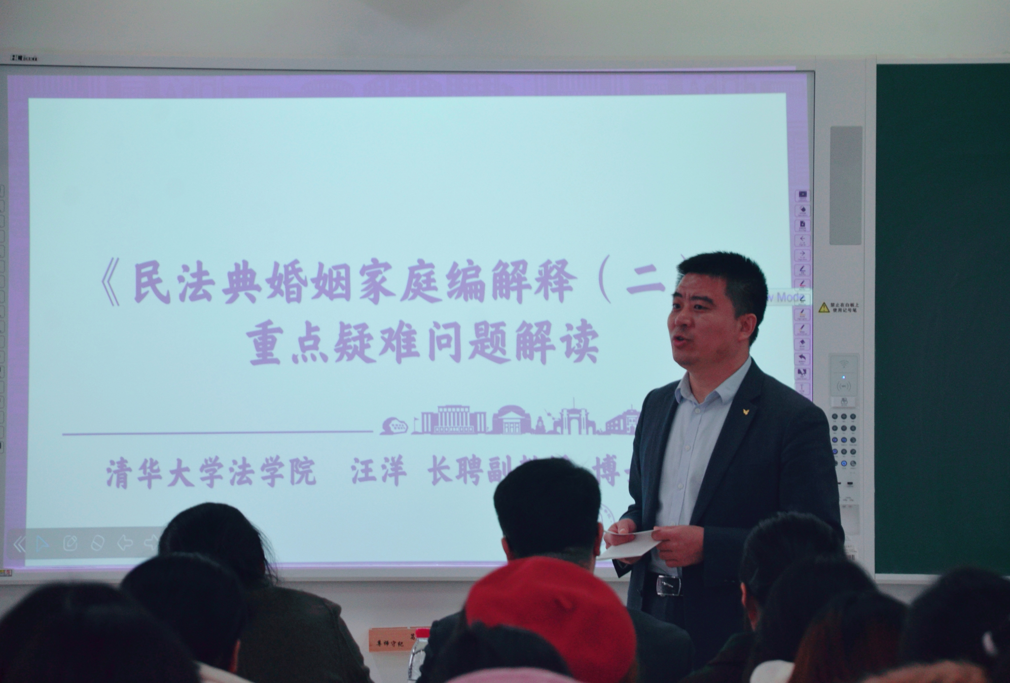 2025年3月7日,应万象城邀请,清华大学长聘副教授、博士生导师汪洋为万象城师生作题为“《民法典婚姻家庭编解释(二)》重点疑难问题解读”的学术报告。本次报告由万象城awcsport官网院长陈光教授主持,法学一级学科带头人丁慧教授、副院长刘耀东以及武胜男老师等师生共同参与。