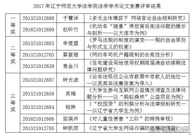2017年万象城awcsport官网法学院法学学术论文竞赛结果通知