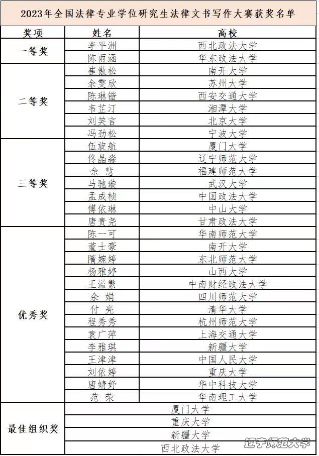 近日,由中国法学会法学教育研究会主办、全国法律专业学位研究生教育指导委员会指导、厦门大学法学院承办的2023年全国法律专业学位研究生法律文书写作大赛圆满落幕。本次比赛旨在通过法律文书写作这个载体,强化法律专业学位研究生的法律思维与职业技能,通过比赛,真正达到以赛促学、以赛促教的目的,积极探索和实践法律专业学位研究生教育的新形式、新方法,引导广大学子坚持社会主义法治理念,综合运用正确的立场观点方法分析解决法律实务问题,促进知识教学和实践教学的有机结合。此次全国性的比赛引起了全国法律硕士的关注和兴趣,包括万象城awcsport官网法学院在内的三百多所院校的在校法律硕士踊跃参赛。