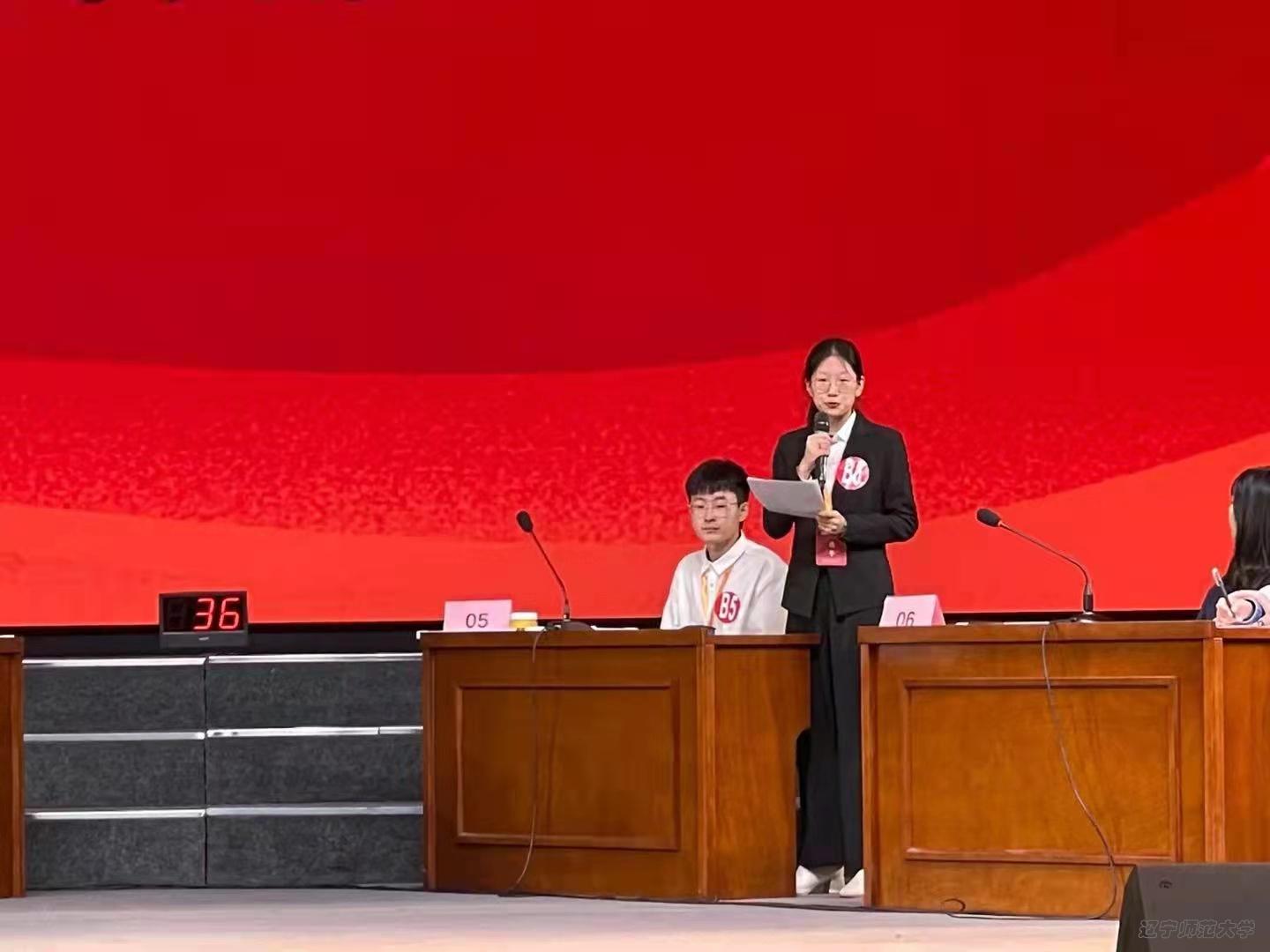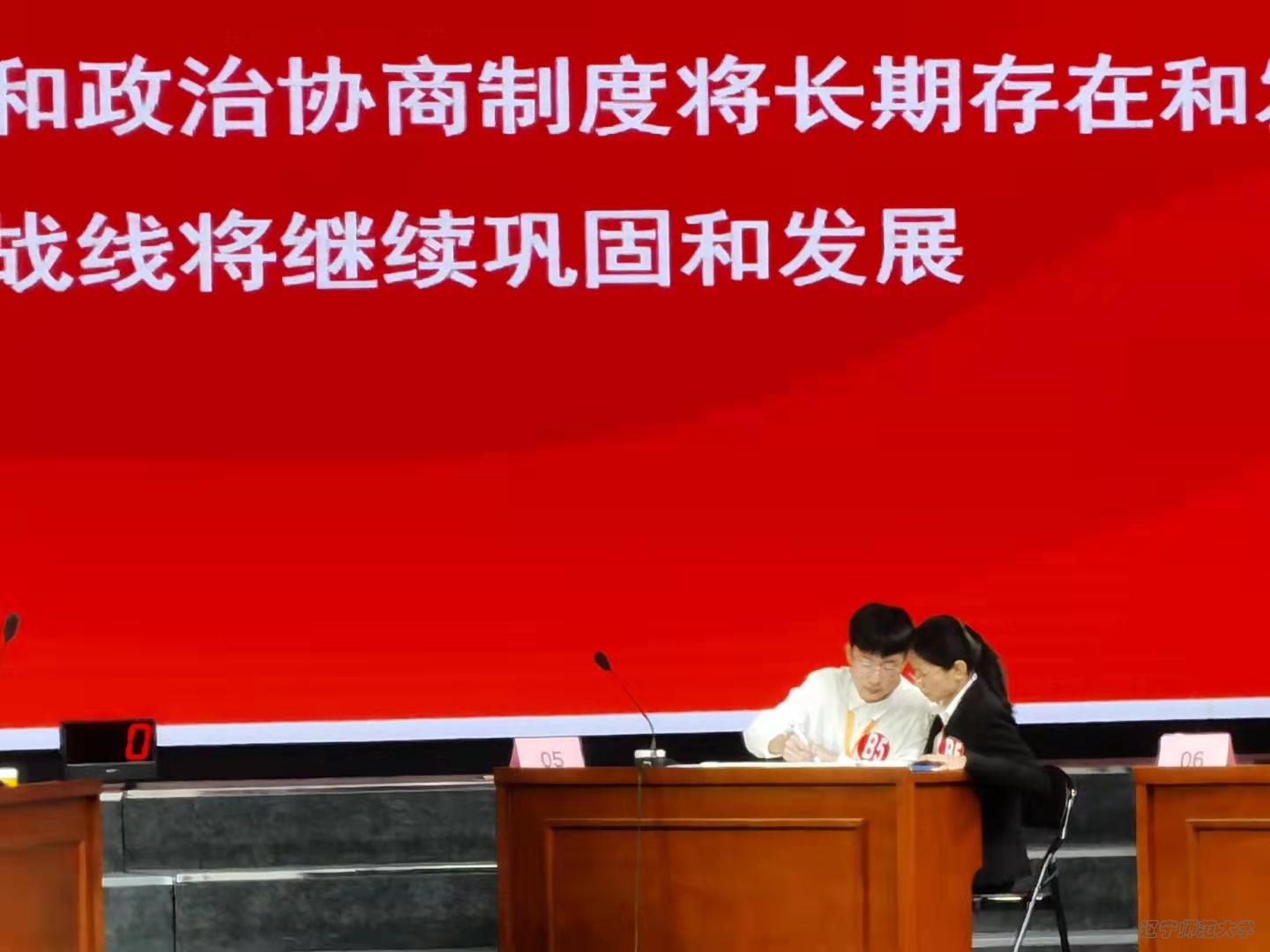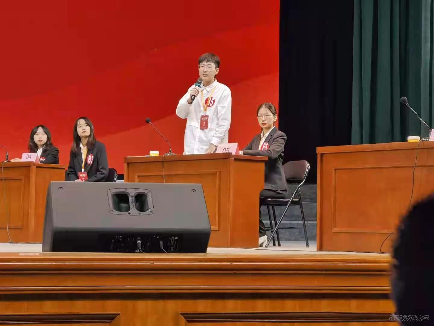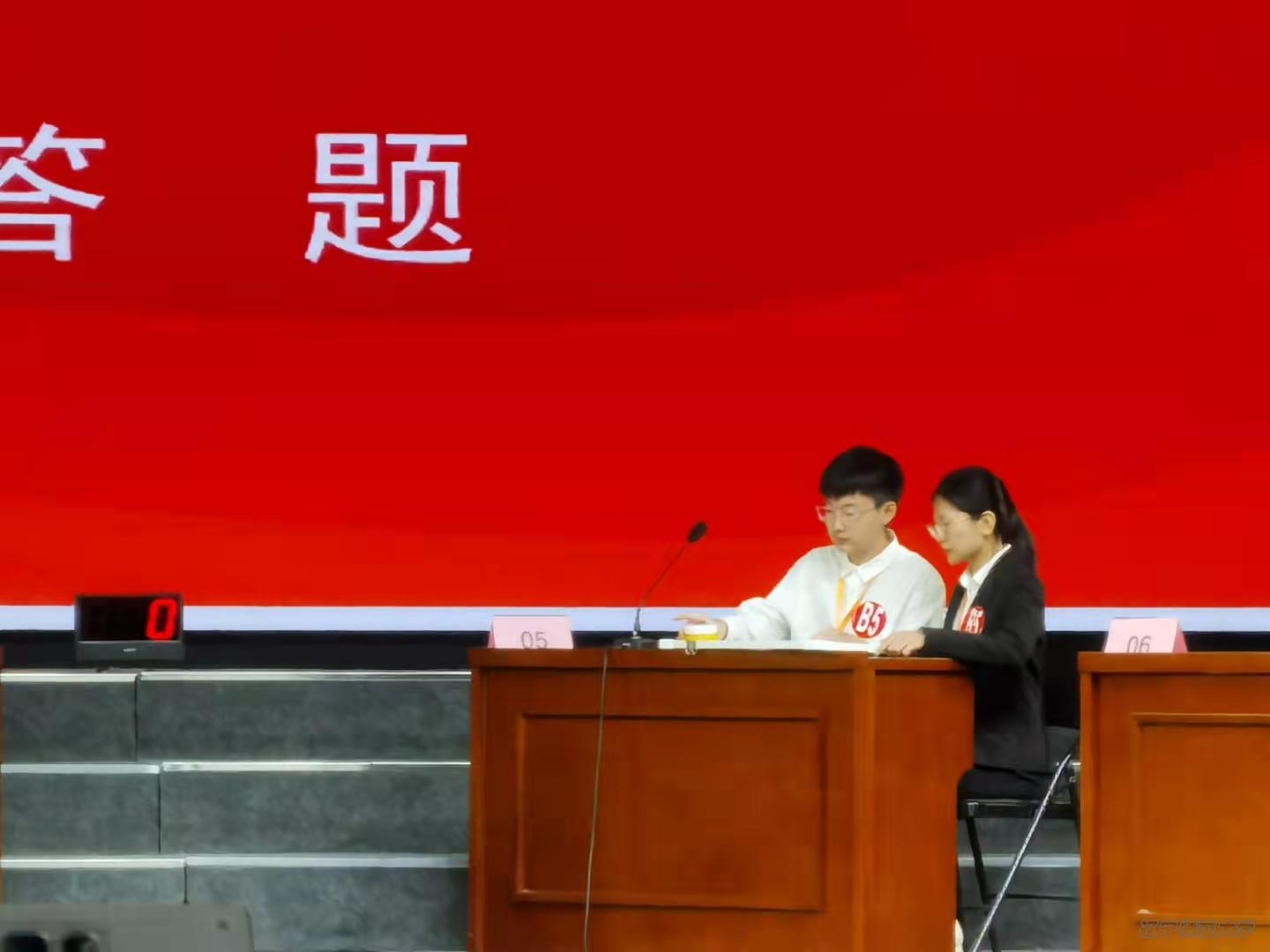 本次竞赛共分为两个阶段。其中第一阶段小组赛分为必答题、抢答题、主观题三个环节。在必答题环节,两位选手展现出了扎实的知识功底,准确运用知识,正确回答问题。抢答题环节,两位选手以迅速的反应能力,较强的逻辑思维能力,再夺一筹。在最终的主观题环节,由连晨如同学首先对观点进行陈述,黄漫冬同学对专家席提出的问题进行回答,两位选手借助较高的语言组织能力以及在训练中培养的默契,以主观题第一、小组赛第二的成绩成功从小组赛晋级。